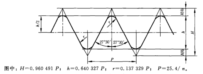 G螺紋為英制55°非密封管螺紋,國家標(biāo)準(zhǔn)為 GB/T 7307-2001,牙型見下圖。