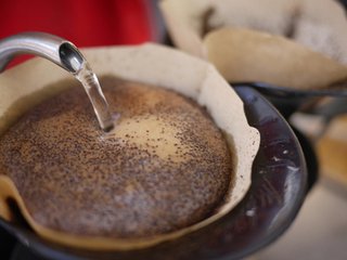 手沖咖啡的第一步就是用手搖磨豆機(jī)磨咖啡豆,然后將折好的濾紙放在濾杯中,將熱水均勻的沖在濾紙上,使濾紙全部濕潤,緊緊貼附在濾杯上,再將磨好的咖啡粉倒入濾杯中,輕輕拍平,于咖啡粉上均勻注水約咖啡粉克數(shù)的1.5倍水量,燜蒸,注水,萃取,得到的就是我們美味的咖啡了。