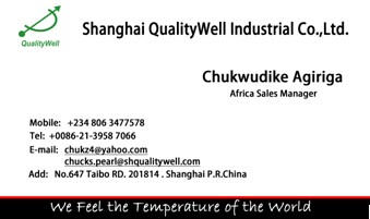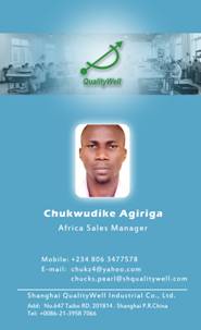 經(jīng)過幾個月的尋找和溝通,終于與尼日利亞的 Mr. Chukwudike Agiriga 簽訂了獨(dú)家代理的上海森垚儀表的協(xié)議。并且為代理商準(zhǔn)備了上海森垚的工作證和名片, 以便開拓尼日利亞市場。