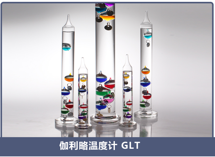 在1593年伽利略(1564~1642)發(fā)明了彩色玻璃球溫度計,現(xiàn)在市場上也稱為伽利略溫度計,主要用于室內(nèi)裝飾或作禮品收藏等用。這種溫度計外部為一根玻璃管,內(nèi)裝有透明液體,透明液體中又有數(shù)枚盛有不同顏色液體的密封小玻璃泡。每個小玻璃泡的底端掛有一個吊牌,上面寫著一個溫度值。由此而不同密度的盛有彩色液體的密封玻璃球置于一個玻璃容器。有些型號的伽利略彩球溫度計在外部玻璃管周圍還裝有木架或鐵架等裝飾。
