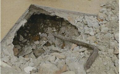 最令何先生擔(dān)憂的是,地磚溫度越來越高,為了查清原因,他在8月29日找人撬開最燙的地磚,發(fā)現(xiàn)下面的混凝土層溫度更高。