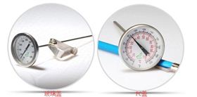 其實雙金屬溫度計有防水和不防水的兩種,我們都是安裝客人要求來定制雙金屬溫度計,有防水要求的表頭一般為玻璃蓋,內(nèi)部是含有墊圈的,內(nèi)部密封住就能有效防止水的流入。