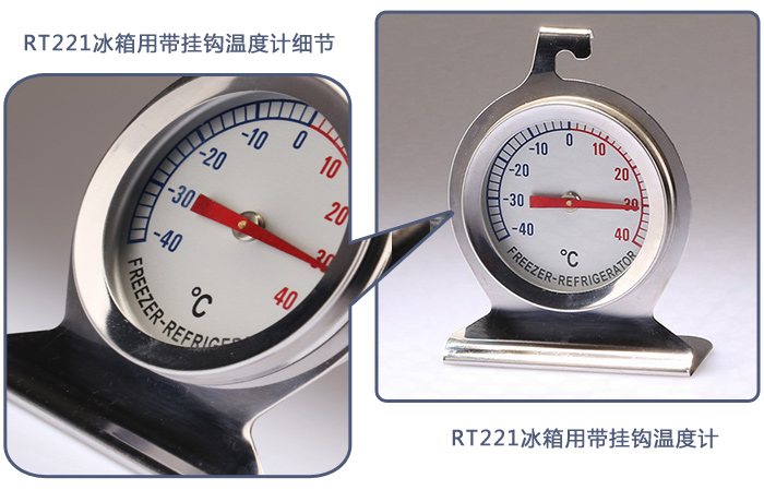 | 型號:RT221冰箱用帶掛鉤溫度計(jì) | 類型:帶掛鉤冰箱溫度計(jì) | 材料:全不銹鋼SS304 |