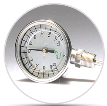 雙金屬溫度計,可以在各種生產(chǎn)過程中直接測量-50+ 500范圍內(nèi)的液體、蒸氣和氣體介質(zhì)的溫度。其工作原理是將帶螺紋的熱雙金屬用作溫度傳感裝置,并將其安裝在保護套中,保護套的一端是固定的,稱為固定端,另一端連接到細軸(稱為自由端)上。線軸自由端有一個指針。當(dāng)溫度變化時,溫度傳感裝置的自由端隨之旋轉(zhuǎn),驅(qū)動細軸上的指針產(chǎn)生角度變化,并且相應(yīng)的溫度顯示在刻度盤上。它可以與各種安裝殼體結(jié)合使用,以滿足不同溫度水平的要求。