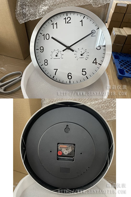 這是一款直徑為300mm的掛墻式溫濕度鐘,上蓋圈是采用鋁拉絲材質,背部為黑色ABS塑料,表蒙使用玻璃,盡顯高檔;刻度盤白底黑字,讀數清晰。適合家庭、辦公室、工廠車間、機房等領域使用,讓你實時掌控溫度、濕度和時間。
