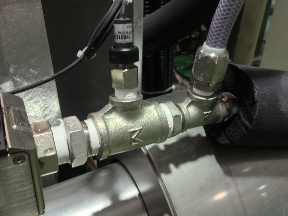 但是從這個圖片可以看出這個管道是密封的,沒有可以安裝溫度計的地方,這個問題就來了,怎么測量呢?我們技術(shù)看了以后,是建議客戶將三通換成四通, 再配我司的溫度計 ,這樣就可以測量管內(nèi)溫度的流水的溫度了。